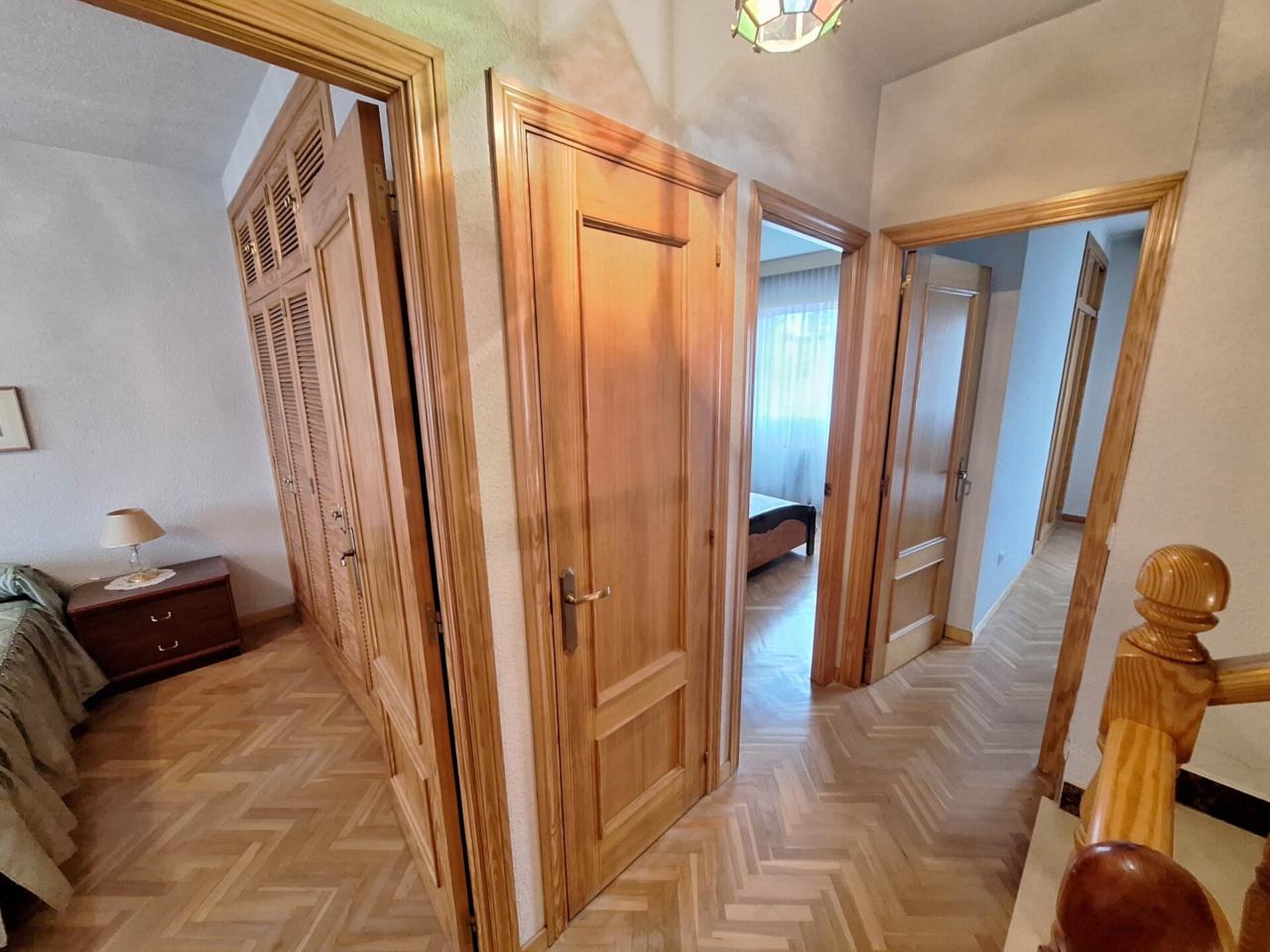 Gestión 3 vende esta exclusiva vivienda unifamiliar adosada con un magnífico jardín privado de 100 m², y un patio delantero de unos 46M², situada en una de las mejores zonas residenciales de Las Villas de Fuenlabrada, dentro de un entorno privilegiado, consolidado, tranquilo y excelentemente comunicado. Con una superficie total de 245 m² distribuidos en cuatro plantas, esta propiedad destaca por su amplitud, luminosidad y un estado de conservación impecable.