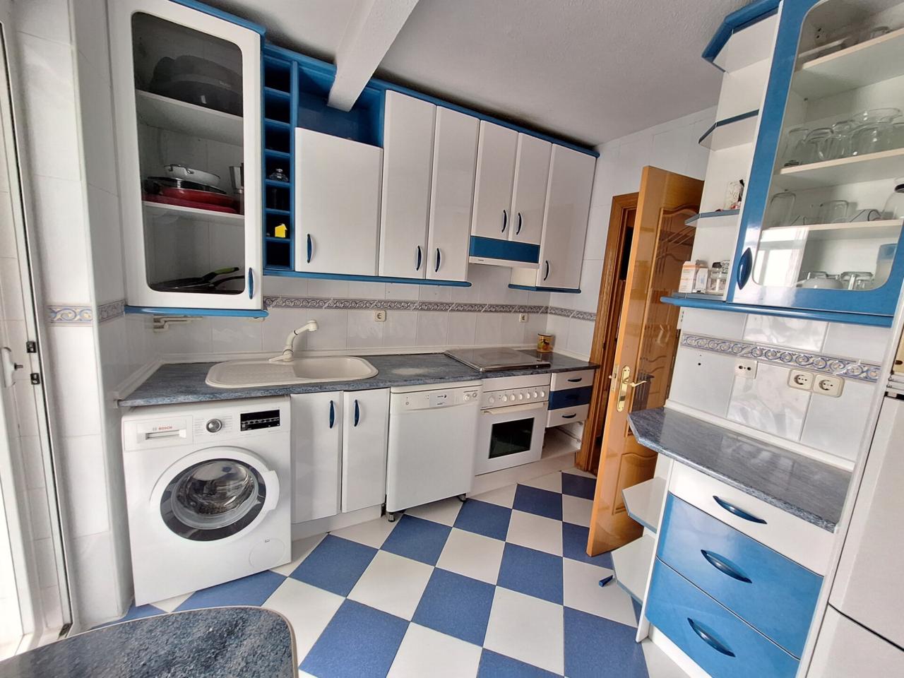 La cocina, totalmente amueblada, ofrece gran capacidad y acceso a un práctico lavadero independiente, aportando comodidad en el día a día.